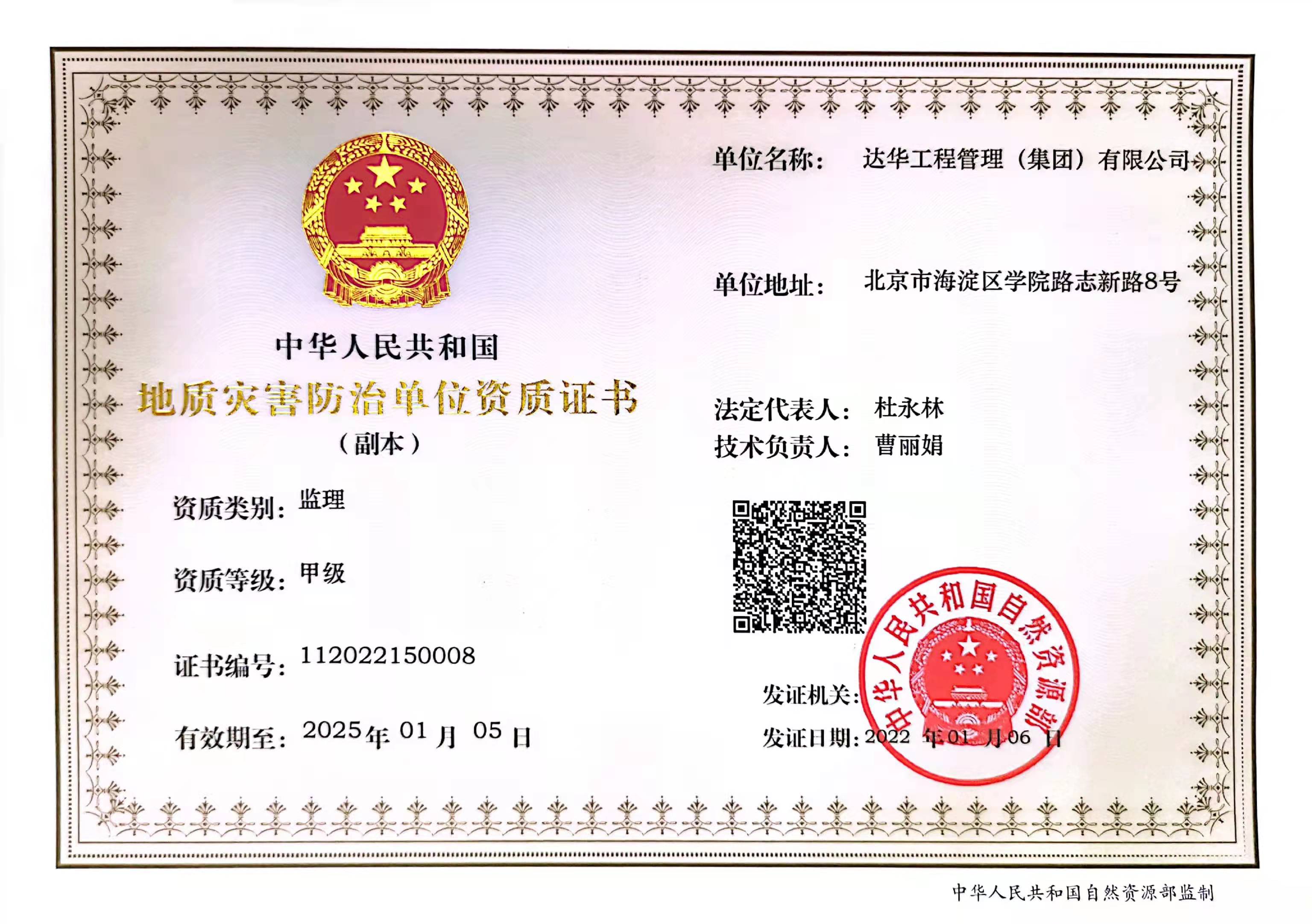 - 達(dá)華集團(tuán)榮獲中國自然資源部頒發(fā)的地質(zhì)災(zāi)害… 2022/01/21